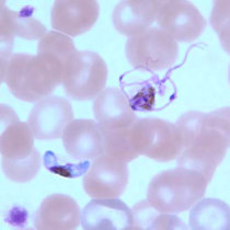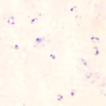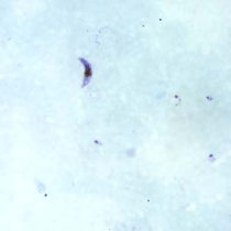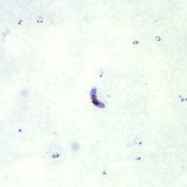 از ویژگیهای آن این است که گامتوسیتهای هلالی شکلی دارد. تروفوزوئیتهای رشد یافته (پیر)، مروزوئیتها و گامتوسیتهای نارس بندرت در خون محیطی دیده میشود. در لام خون محیطی بیماران آلوده به این نوع پلاسمودیوم معمولا فقط تروفوزوئیت جوان و گامتوسیتهای رسیده دیده میشوند.