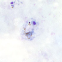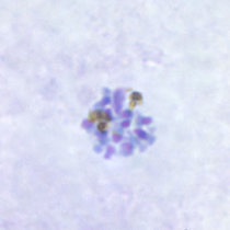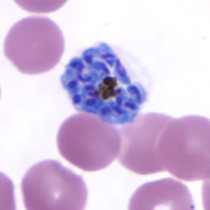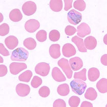 گلبولهای قرمز آلوده بزرگتر از معمول و دانههای شوفنر در گلبولهای آلوده به این انگل دیده میشوند.