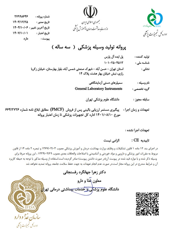برای کسب اطلاعات بیشتر در مورد ضمات نامه و خدمات پس از فروش سمپلرهای .P.I.P به وب سایت شرکت پل ایده آل پارس مراجعه نمایید. -